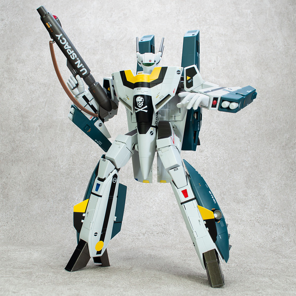 まずファイター形態は、印象的なスカルマークや黄色と黒のツートンラインを再現しつつ、表面処理は落ち着いたマットな質感で、実機を思わせるリアル寄りの仕上がりに!